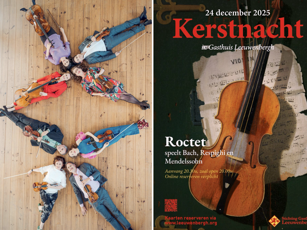 De komende editie van de Kerstnacht speelt het Amsterdamse ensemble Roctet een prachtig programma met werken van Bach, Respighi en Mendelssohn. Roctet is het eerste permanente strijkoctet van Nederland en heeft sinds de oprichting in 2016 een unieke positie verworven in de kamermuziekwereld. Het ensemble staat bekend om zijn expressieve en energieke speelstijl en laat zich horen op zowel nationale als internationale podia. Naast optredens in vooraanstaande concertzalen is Roctet regelmatig te horen in live-uitzendingen op radio en televisie.